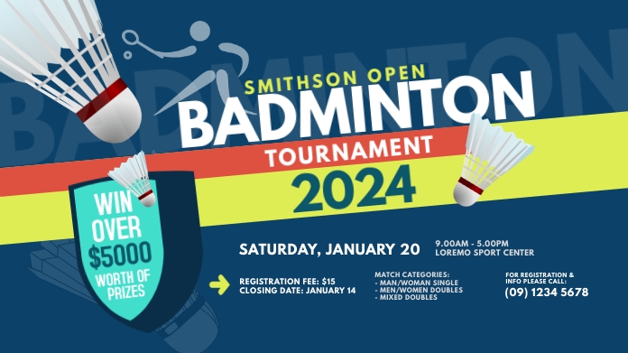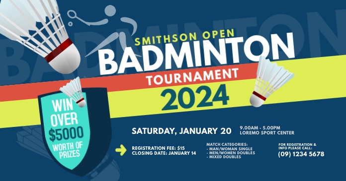 Badminton Tournament Facebook Shared Image Template | PosterMyWall