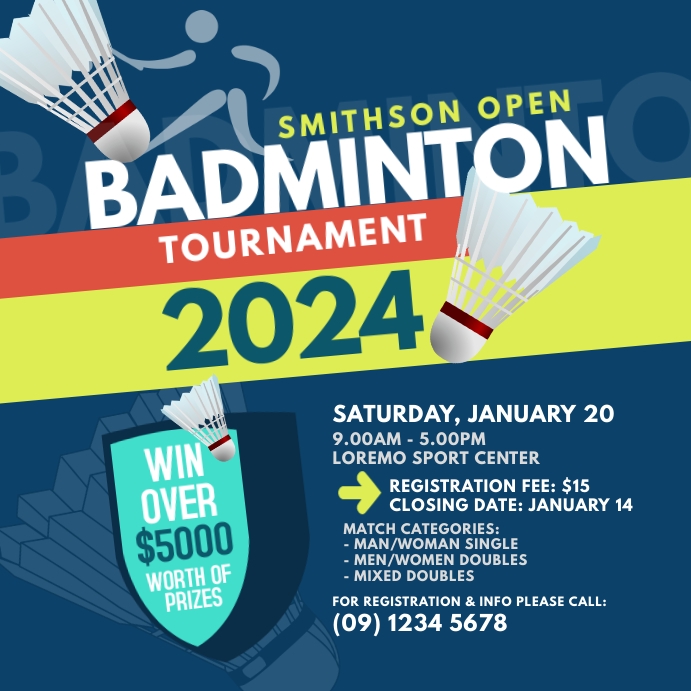 Badminton Tournament Instagram Post Template | PosterMyWall